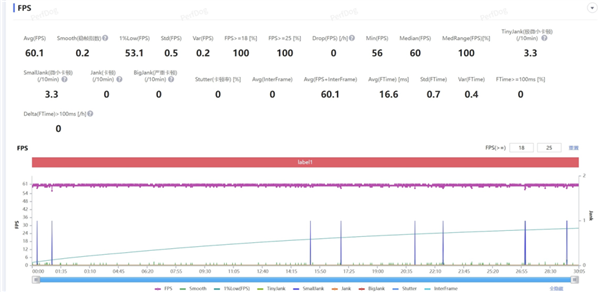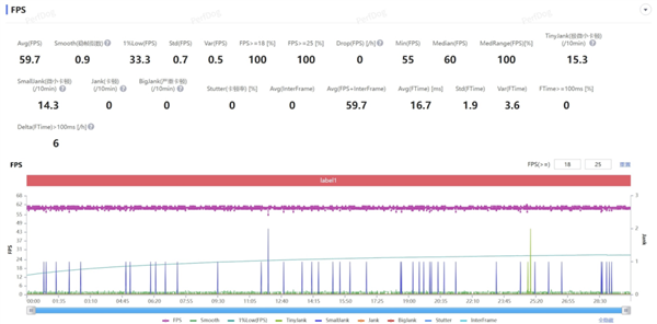而正在压力相当大的 “崩铁” 全高画质匹诺康尼 30 分钟跑图中,荣耀 WIN 也是不负众望,同样跑出了 59。7 帧几乎满帧的成就。