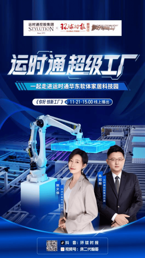 正在此布景下,全球时报《你好,立异工场》节目组于近日走进运时通华东软体家居科技园——运时通华东工场。深切摸索这座超等工场的科技立异及其为国人健康睡眠成长所供给的优良产物处理方案。
